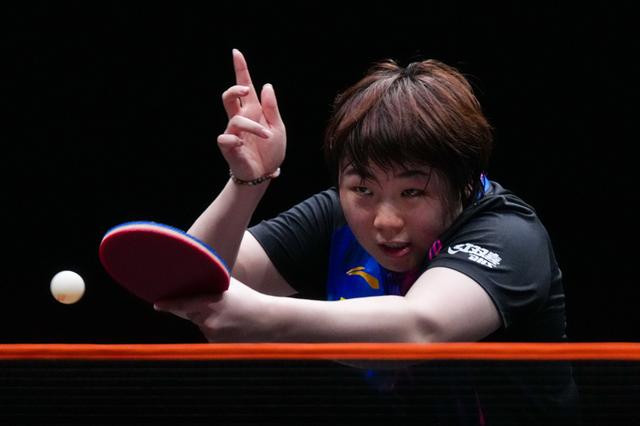 新华社照片,香港,2025年12月12日在香港进行的2025年世界乒乓球职业大联盟总决赛女单四分之一决赛中,中国选手蒯曼4比2战胜日本选手大藤沙月,晋级四强。新华社记者朱炜摄